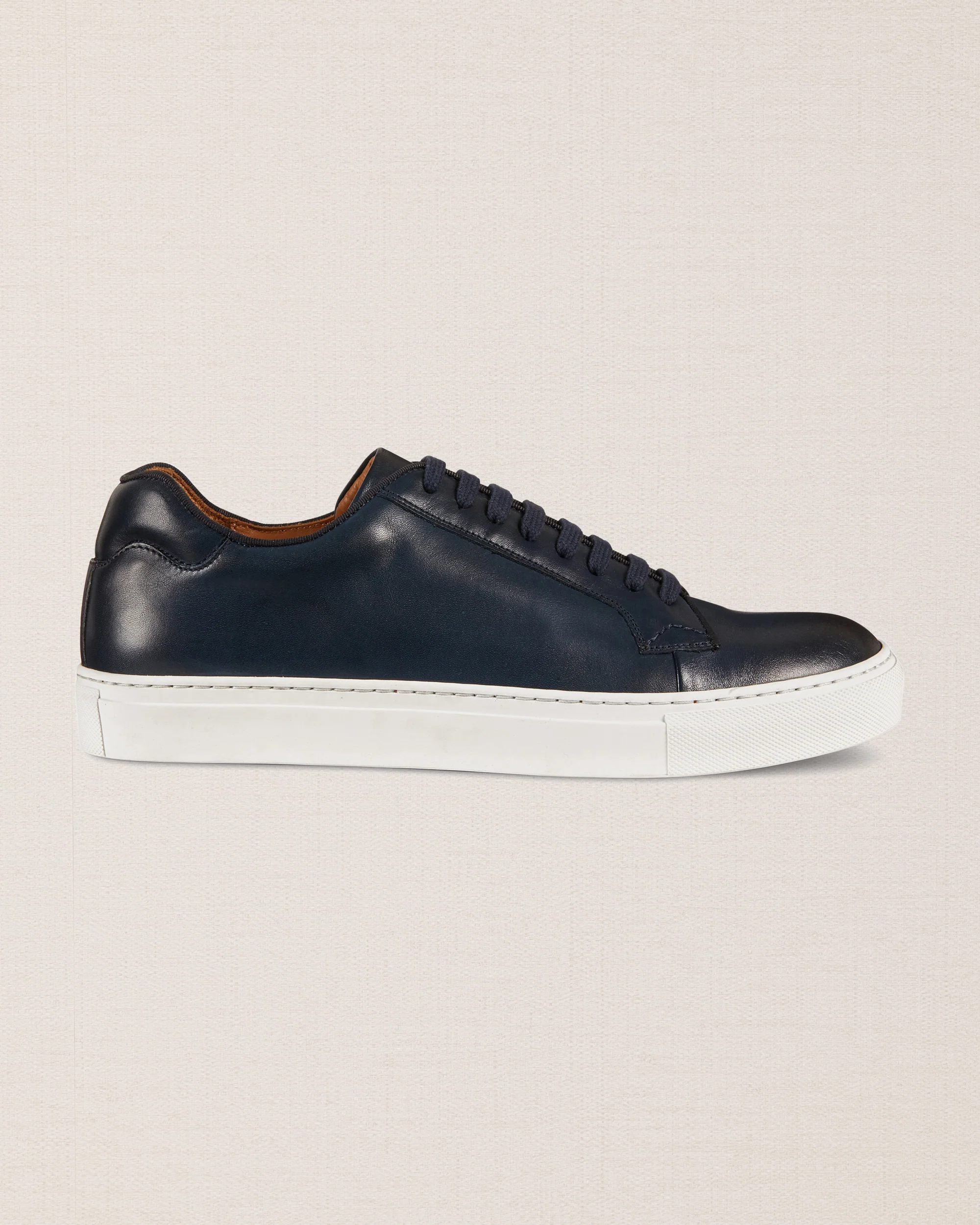 They are our minimalist, austere Sneakers, that allure people with very varied tastes. Matching them is very easy as they’re the most versatile pair of the whole collection. With their full-grain leather, rubber sole, and classic blue, they’re the shoes for the gentleman that loves casual elegance. Match with linen trousers and a short sleeved polo shirt while on holidays.