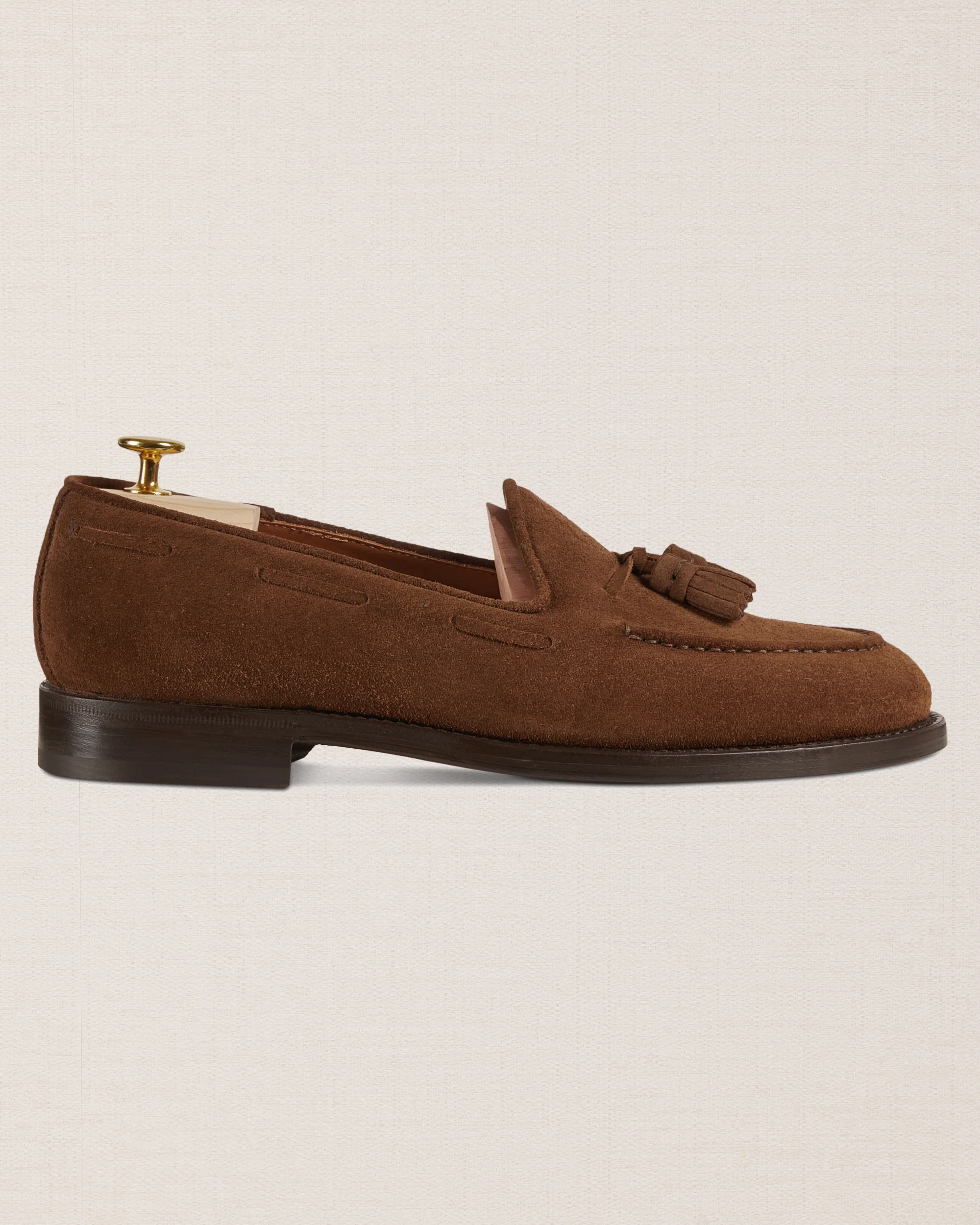These are the Loafers with tassels, in suede calfskin and leather sole.They could remind you of a dandy style, but who said you have to be a real dandy to wear them? We’re for details: if these Loafers struck you at first sight, they’ll be your best touch of elegance under trousers with pleats, for example. Blake-rapid double stitching makes these shoes solid, destined to last for a long time.